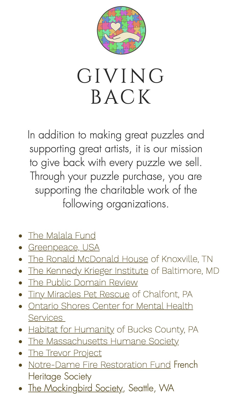 Art & Fable Puzzle Company on Twitter "Charitable Donations are
