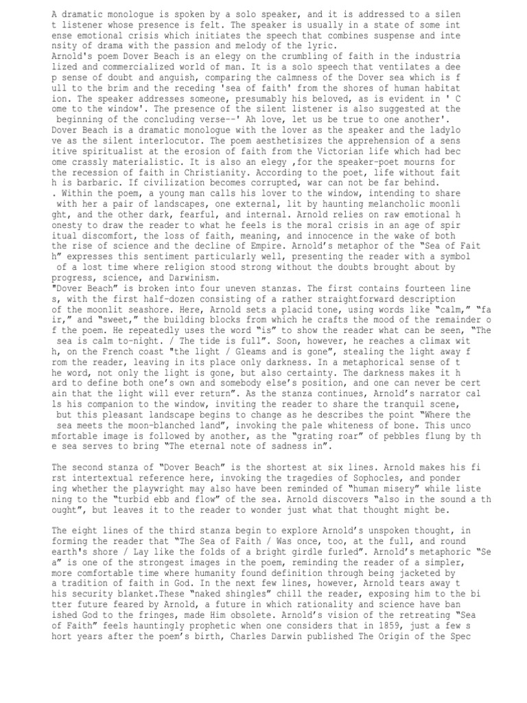 Dover Beach Poetry Religion And Belief