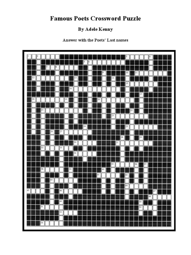Famous Poets Crossword Puzzle Writers Poets