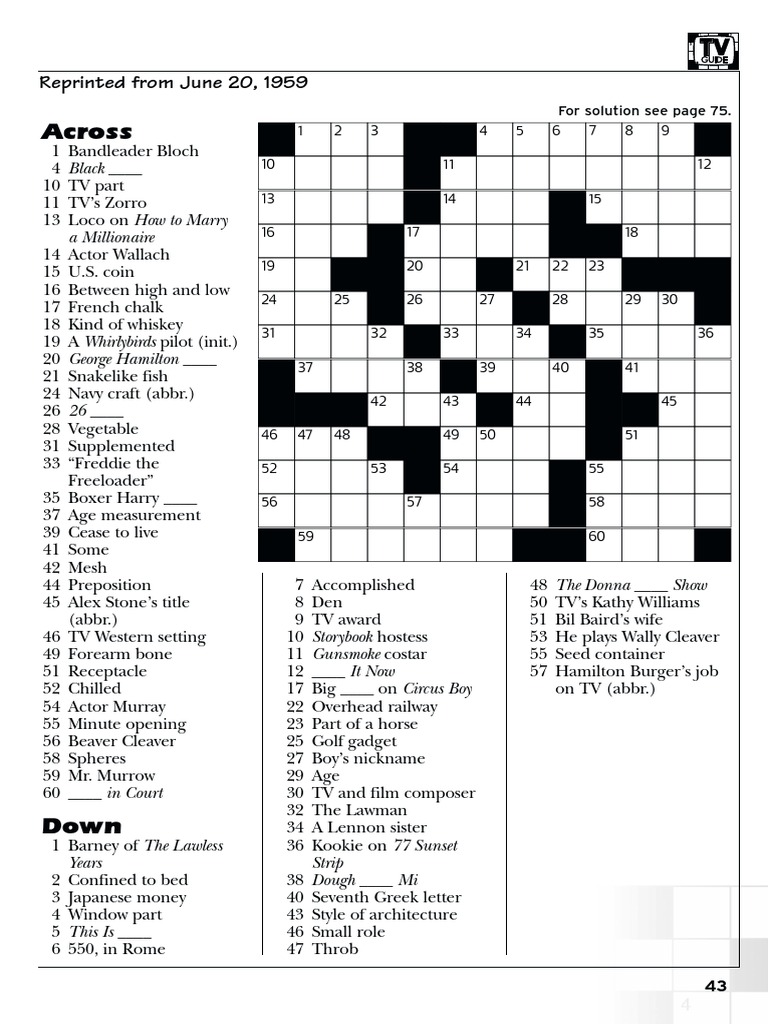 Tv Guide Crossword Puzzles Free Printable Crossword Puzzles