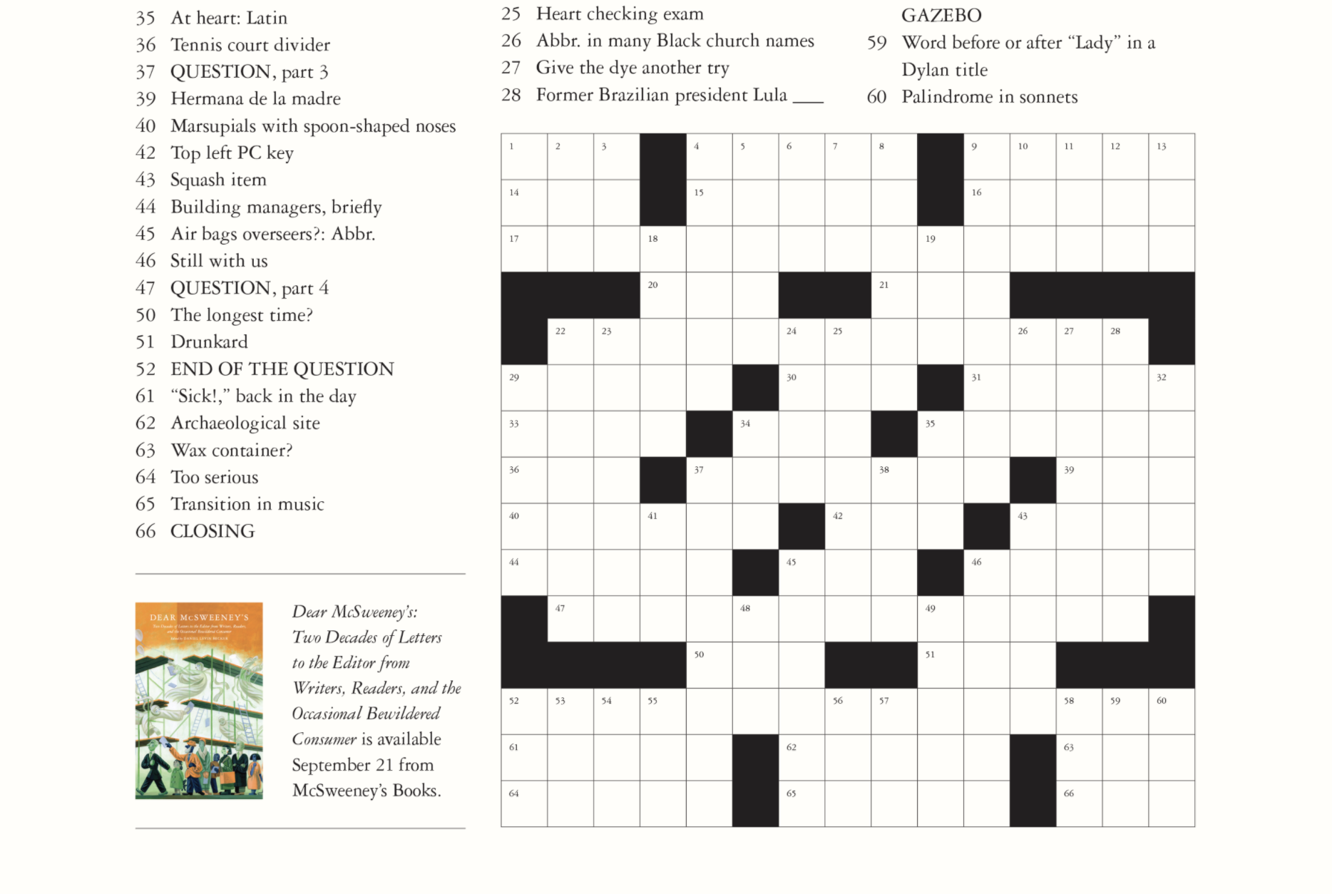 Dear McSweeney’s Crossword Puzzle McSweeney’s Tendency