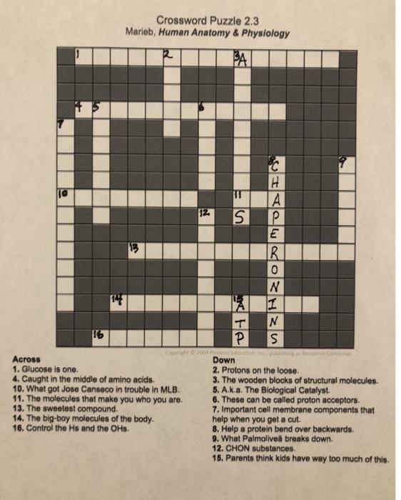Solved Crossword Puzzle 2.3 Marieb, Human Anatomy &