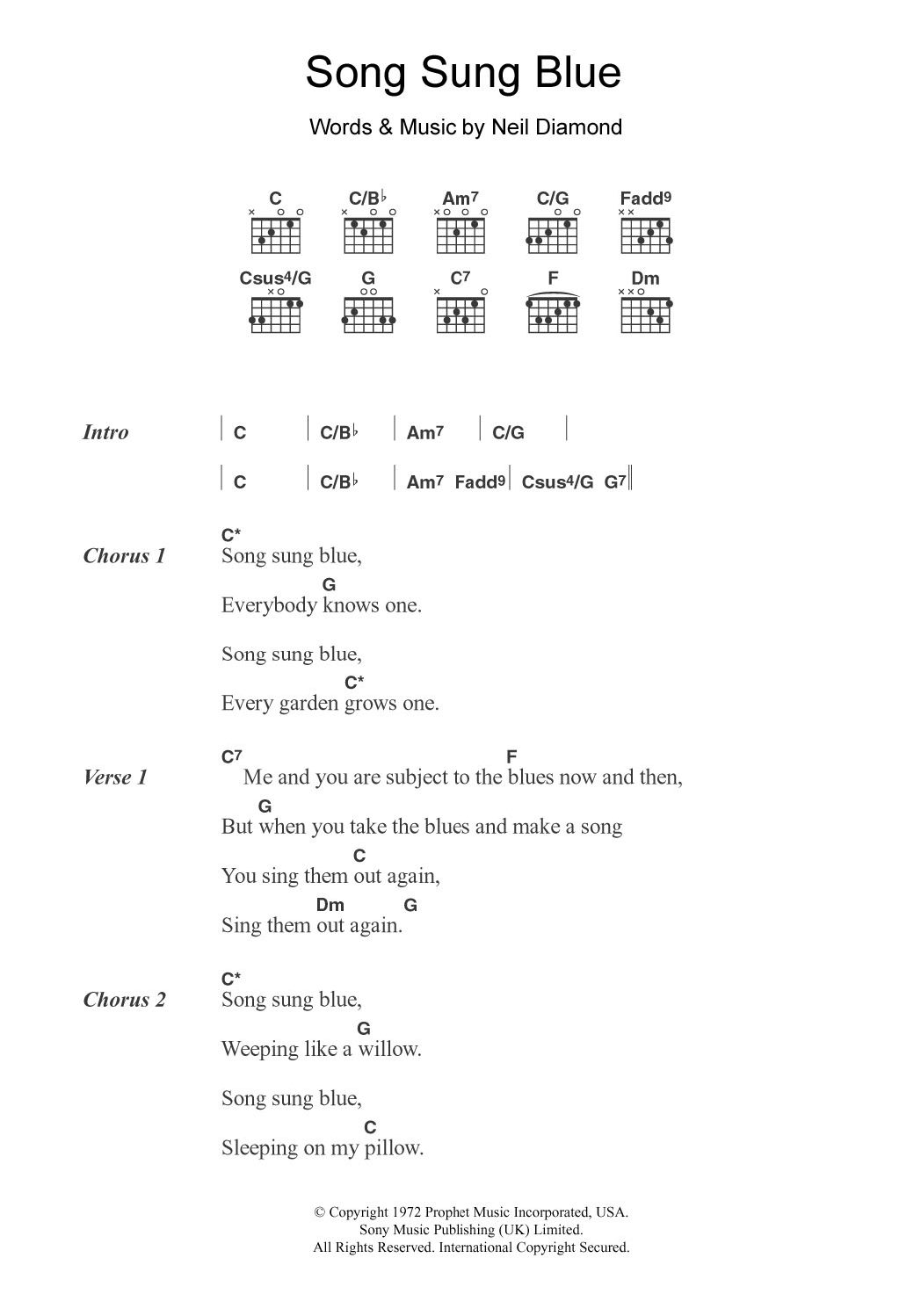 Dr. Sheet Music Song Sung Blue, Neil Diamond