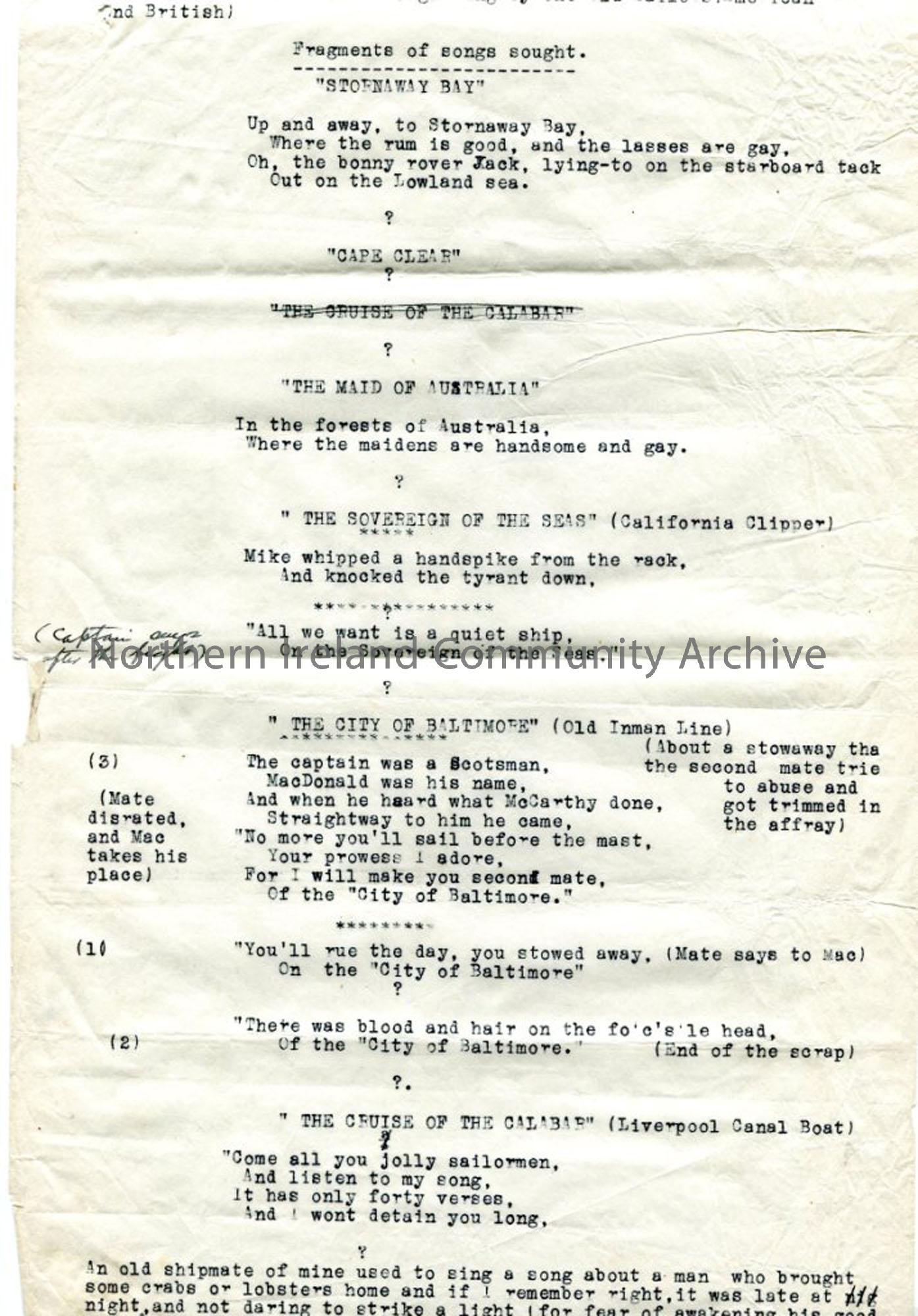 Songs sung by British and American Sailors NI Archive