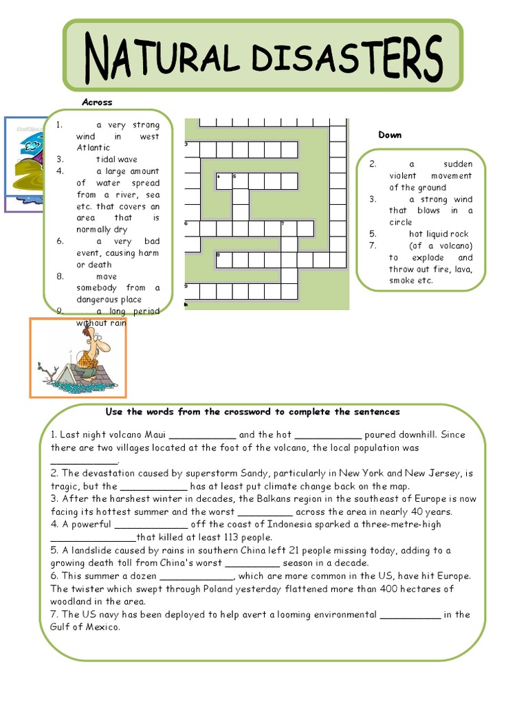 Natural Disasters Crossword Puzzle English ESL Worksheets Natural