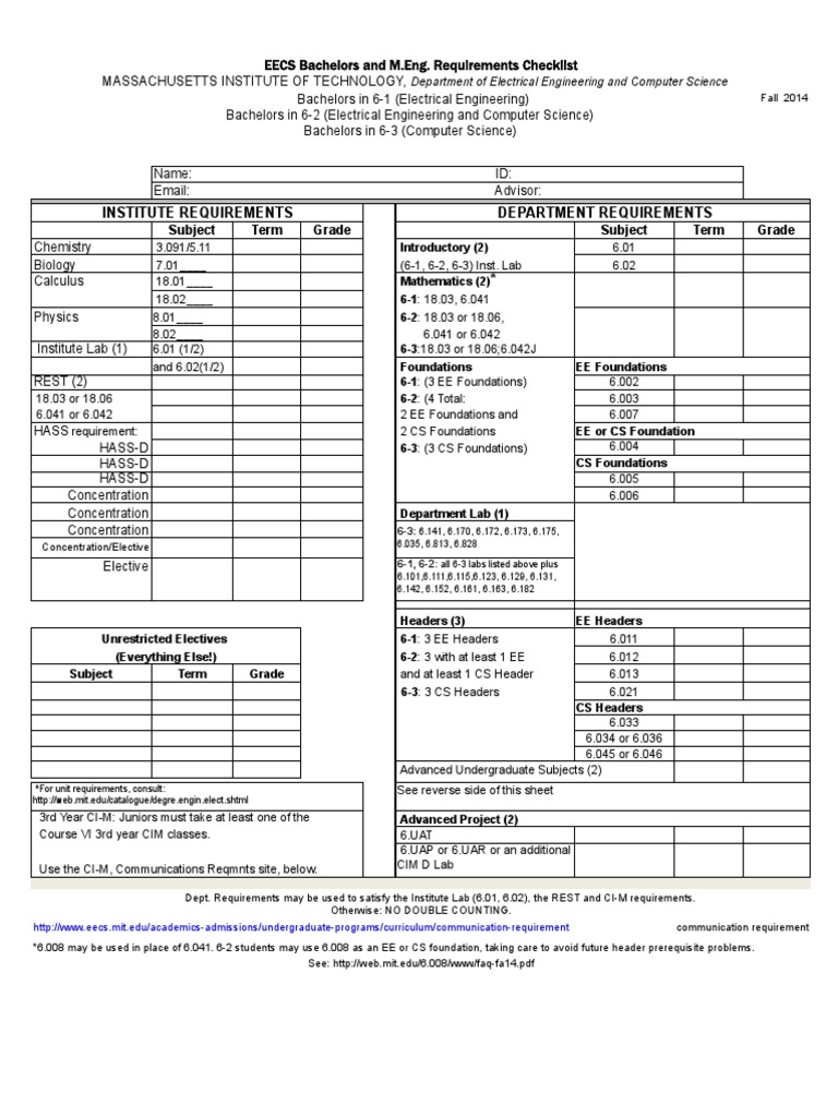 mit undergrad course 6 checklist Massachusetts Institute Of